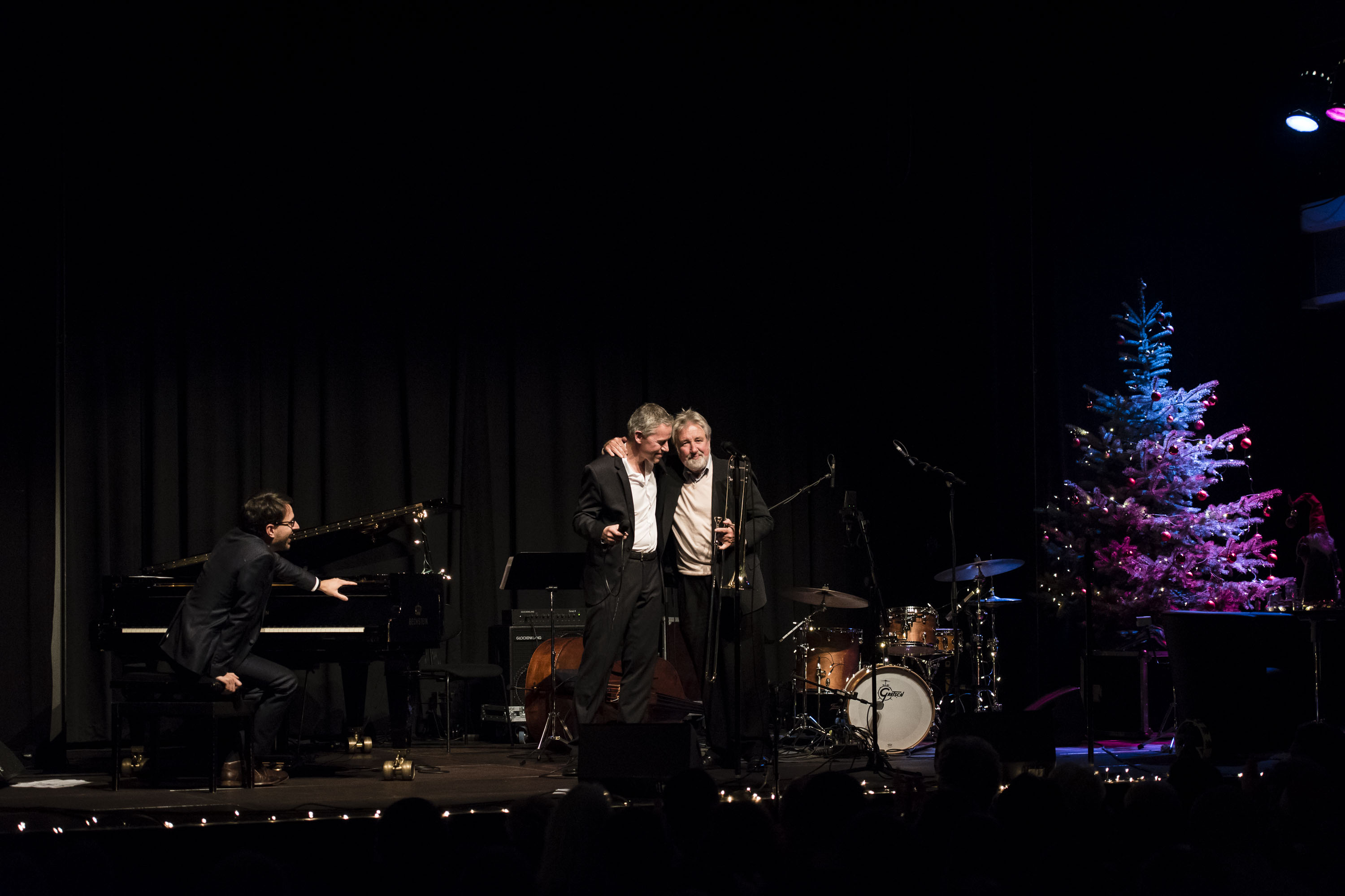 Wir haben im Rahmen von „Treffpunkt Jazz“ in Mainz eine echte aber spontane Weihnachtsgala mit dem großartigen Jiggs Whigham veranstaltet. Neben Moderation und Interview mit Jiggs haben Sebastian Sternal und ich im Trio noch einen Song mit ihm performed (Foto). Der Frankfurter Hof war voll und es war wirklich weihnachtlich, da die Eltern der tollen Sängerin Sarah Pfaff sogar einen Weihnachtsbaum mitgebracht hatten – irre! Und irgendwann sangen alle zusammen „O Du Fröhliche“. So muss Weihnachten... :-)